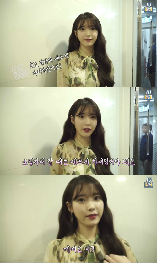 영상에서 아이유는 “쇼핑하러 갈 때는 예쁘게 차려입어야 한다”며 다른 스태프에게 답변 설명을 부탁했다.