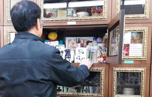 | 경기도 김포시 한 동물장례식장 관계자가 반려동물 추모관에서 반려견 유품을 정리하고 있다. 김동욱 기자 |