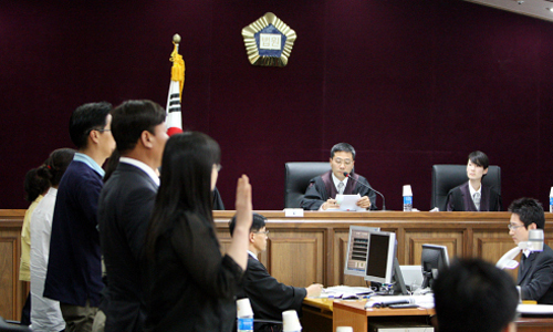 | 국민참여재판에서 배심원들이 선서를 하고 있다. |