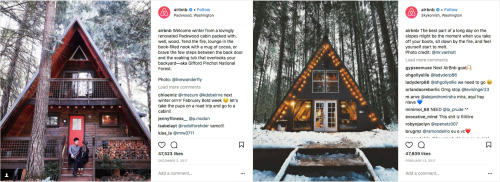에어비앤비는 지난해 1년 동안 인스타그램에서 ‘좋아요’를 가장 많이 받은 숙소를 뽑아 지난 17일 발표했다. 1, 2위는 미국 워싱턴의 스카이코미시와 팩우드에 있는 통나무집이다. 공교롭게도 둘 모두 양쪽으로 경사진 지붕인 ‘박공’의 끝이 바닥까지 내려온 정삼각형 모양의 집이다. 나무로 만든 집인 만큼 눈이 내린 숲과 자연스럽게 어울리면서도 자연과는 다소 이질적인 정삼각형의 형태는 인위적인 느낌을 살짝 줘 환상적인 분위기도 불러 일으킨다. 두 집의 사진은 무수히 공유돼 26일 현재 각각 4만7000여개의 ’좋아요’가 붙었다.