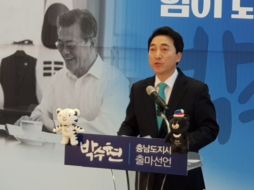 박 전 대변인의 출마선언으로 더불어 민주당 충남지사후보 경선은 먼저 출마를 선언한 양승조(59) 국회보건복지위원장, 복기왕(50) 아산시장 등 3자 대결 구도가 본격화됐다.