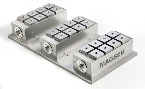 개성테크노로지스는 자사의 시그니쳐 제품인 ‘맥베드’를 출품한다. 맥베드는 전기 사용 없이 영구자석의 자력으로 가공물을 고정하는 제품으로, 모듈 형식으로 제공되기 때문에 사용자가 원하는 크기나 사양으로 쉽게 조립이 가능하고 설치가 간편한 것이 특징이다. 관계자는 “여타 동종 제품들과 비교해 월등한 자력을 보유하고 있음은 물론, 자력이 영구히 보전되어 전자척 대비 유지·보수 비용이 거의 없는 것이 가장 큰 장점”이라고 설명했다.