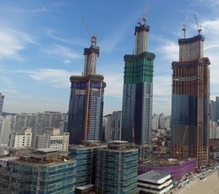 포스코건설이 시공중인 엘시티는 대지면적 약 1만9980평에 연면적 약 20만 평 규모로 101층(411m)의 랜드마크 건물과 85층(339m) 주거타워 2개동으로 구성된다.