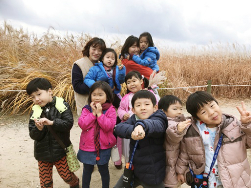 | ‘콩세알어린이집’ 어린이들이 학부모들의 지도 아래 야외에서 체험학습을 하고 있다. 콩세알어린이집 제공 |