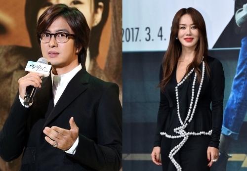 | 키이스트 소속 배우 배용준(왼쪽)과 엄정화. |
