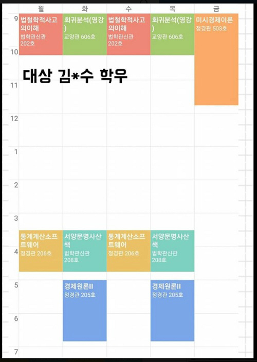 수강신청 전략 '실패'로 낙담했다면 이들의 시간표를 보고 위안 삼아도 좋을 듯하다.