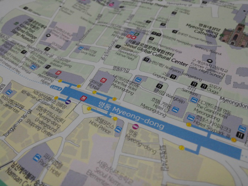 서울 중구가 발행한 관광안내지도 일부. 명동거리 관광안내센터에서 여전히 많은 이들은 종이지도를 찾고 있었다. |