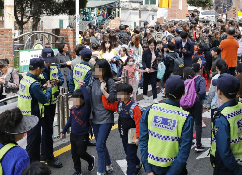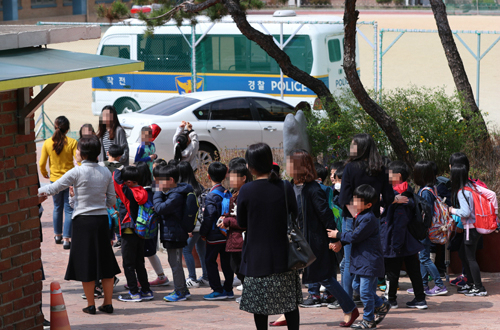 그 사이 1000명에 달하는 이 학교 학생들은 두려움에 떨어야 했다. 유모(12)양은 “오전 11시50분쯤 선생님이 갑자기 ‘창문을 내리고 앞문, 뒷문도 닫으라’고 했다. 처음에는 무슨 상황인지 몰랐다”고 말했다.