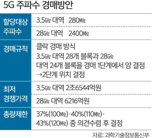 이날 공개된 5G 주파수 경매안의 핵심은 3조3000억원에 달하는 시작가와 총량 제한이다.