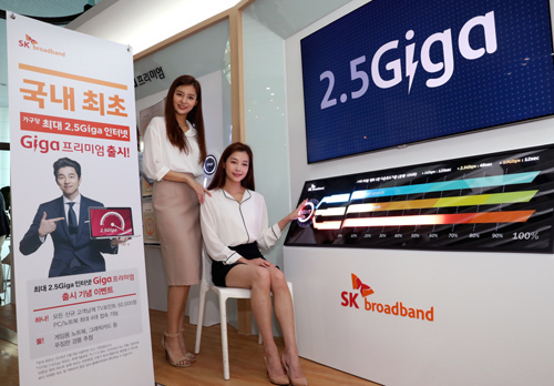 | 10일 서울 중구 SK브로드밴드 본사에서 모델들이 국내 최초로 상용화되는 SK브로드밴드의 2.5기가(Gbps) 인터넷 서비스를 소개하고 있다. 뉴시스 |