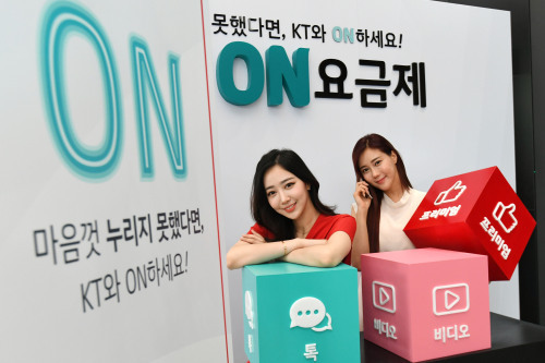 30일 오전 서울 광화문 KT스퀘어에서 여성모델들이 포토월 앞에서 새롭게 개편된 데이터요금제를 소개하고 있다. 남정탁 기자 jungtak2@segye.com Copyright ⓒ 세계일보. 무단 전재 및 재배포 금지