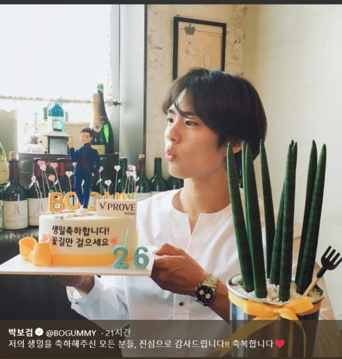 지난 16일 박보검은 사회관계망서비스(SNS)에 "저의 생일을 축하해주신 모든 분들, 진심으로 감사드립니다!! 축복합니다"라는 글과 함께 사진(위)을 올렸다.