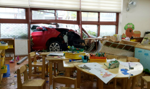 이 사고 충격으로 모닝 차체 전면부가 창문 일부를 뚫고 유치원 교실 안으로 들어갔다.