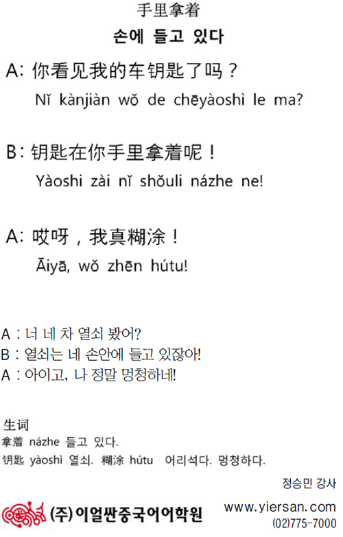 [이얼싼 중국어 회화] 손에 들고 있다
