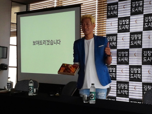 | DJ DOC 멤버 김창열이 19일 오전 11시 서울 명동 월향에서 열린 '김창열 도시락 시즌2' 기자간담회에서 시제품을 든 채 포즈를 취하고 있다. 이번에 선보인 도시락은 완제품이 아니며, 추후 피드백 등을 거쳐 더 보완할 예정이다. |