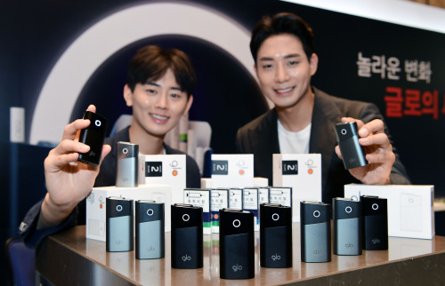 23일 오전 서울 포시즌스 호텔에서 모델들이 브리티쉬 아메리칸 토바코 코리아(BAT 코리아)의 ‘글로 시리즈 2’와 글로 전용스틱인 ‘네오’를 선보이고 있다. 글로 시리즈 2는 부드러운 원통형으로 편안해진 그립감이 특징이며 별도의 충전기가 필요 없는 버튼일체형 기기로 이루어져 사용이 간편하고, 한번 완충으로 최대 30회 연속사용이 가능하다. 블랙과 그레이 두 가지 색상으로 출시된다.