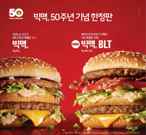 빅맥은 1988년 맥도날드의 한국 진출과 함께 국내 고객들에게도 소개되었으며, 지난 6년여간 한국에서만 1억개가 넘게 판매되었을 정도로 꾸준한 사랑을 받고 있다.