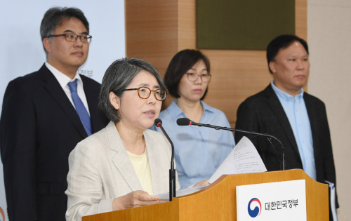| 국가교육회의 대입제도개편 공론화위원회 김영란 위원장이 3일 서울 세종로 정부서울청사 별관에서 기자회견을 열고 “공론화 결과 다수의 지지를 받은 유의미한 안이 도출되지 않아 판단을 유예한다”고 발표하고 있다. 이제원 기자 |