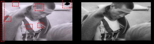 | 손기정 선수의 기록 영화인 ‘민족의 제전’ 복원작업 전(왼쪽)과 후(오른쪽)의 장면 캡처. 국가기록원 제공 |