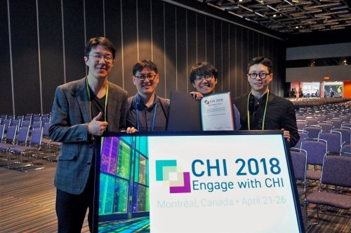 | 최근 캐나다 몬트리올에서 열린 인간-컴퓨터 상호작용학회에서 배석형 교수(왼쪽 두 번째)와 연구원들이 최우수 논문상을 받고 있다. KAIST 제공 |