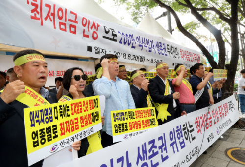 최저임금 인상에 따른 논란이 거센 가운데 자영업 외식업자들도 생계 대책 마련을 요구하며 거리로 나섰다.