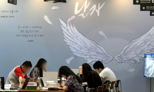 | '2018년 7월 고용동향'에 따르면 전년 동월 대비 5000명 증가하는 데 그쳐 취업 증가 폭이 1만명에도 미치지 못한 것이 2010년 1월 이후 8년6개월 만에 처음인 '고용쇼크' 상태가 찾아온 가운데 21일 오후 서울 중구 서울지방고용노동청 서울시청년일자리센터 일자리카페를 찾은 취업준비생들이 취업준비를 하고 있다. 남정탁 기자 |