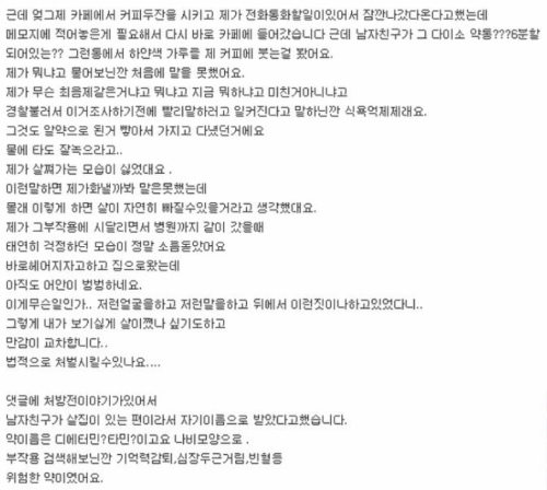 남자친구가 품에서 약통을 꺼내 정체 모를 하얀색 가루를 자신의 음료에 쏟아붓고 있었던 것.