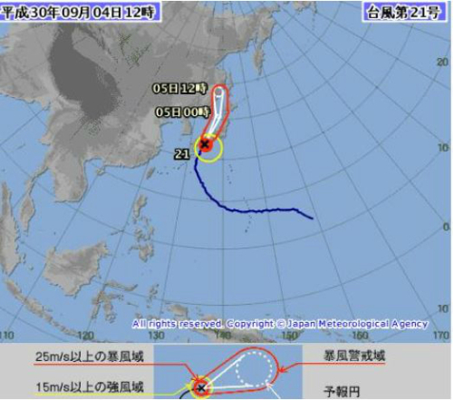 이에 따라 일본 열도에 1993년 이후 25년 만에 강력한 태풍이 서부를 중심으로 폭풍과 폭우를 일으킬 것으로 예보되고 있다.