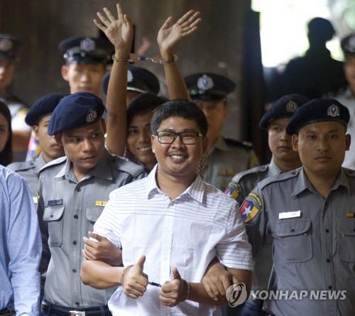 앞서 미얀마 법원은 로힝야족 유혈사태 취재 도중 체포된 와 론(32), 초 소에 우(28) 등 2명의 로이터 통신 기자들에 대해 공직기밀법, 뉴미디어법, 미디어 행동강령 위반 등을 인정해 징역 7년의 중형을 선고했다.