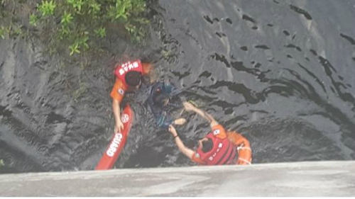 A씨가 뭇가지를 붙잡고 있는 모습을 본 행인이 119에 신고, A씨는 17분 만에 구조돼 병원으로 옮겨졌다.