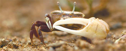 흰발농게는 해안 개발로 인해 멸종위기 2급 야생생물로서 해양수산부가 지정한 보호 대상 해양생물이기도 하다.