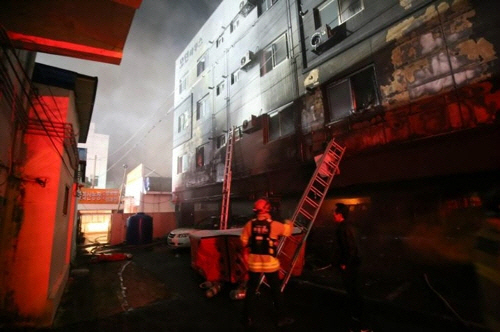 | 지난 13일 0시39분경 부산의 한 5층짜리 고시원 건물 3층에서 불이 나 250만원(소방 추산) 상당의 재산피해를 내고 25분여 만에 진화됐다. |