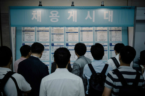 | 지난 9월, 서울 서초구청에서 열린 ‘행복일자리 취업박람회’를 찾은 구직자들이 채용정보를 살펴보고 있다. 하상윤 기자. |