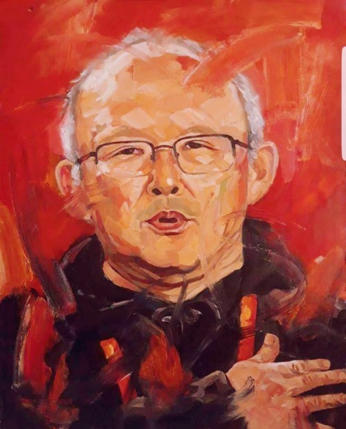| 베트남의 화가 쩐테빈이 그린 박항서 감독의 초상화 ‘나의 스승’. 이 그림은 시작가 5000달러(약 565만원)에 경매에 오를 예정이다. VTV1 캡처 |