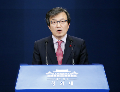| 청와대 김의겸 대변인이 17일 오전 춘추관 대브리핑룸에서 열린 정례브리핑에서 전 청와대 특별감찰반원인 김태우 수사관이 비위 연루 의혹으로 원대복귀 조처된 데 반발해 폭로를 지속하는 상황과 관련, "자신이 생산한 첩보문서를 외부에 유출하고 허위주장까지 하는 행위는 도저히 용납할 수 없다"며 법무부에 추가 징계를 요청했다고 밝히고 있다. |