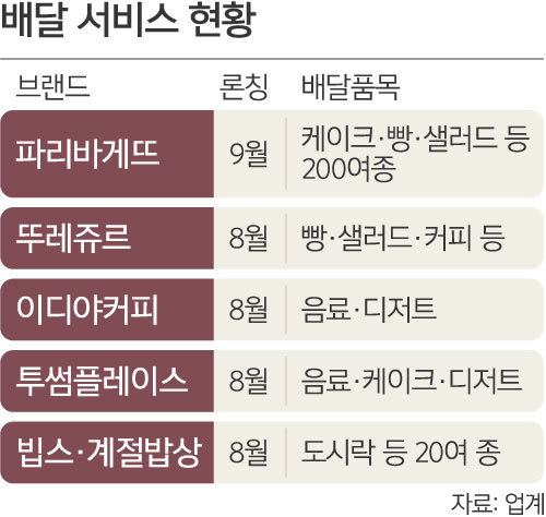 외식 및 프랜차이즈업계도 배달 확대 흐름에 합류하고 있다. 파리바게뜨는 지난 9월 제빵 프랜차이즈 최초로 배달 서비스를 시작했다. 이디야커피, 카페베네 등 커피 프랜차이즈와 패밀리 레스토랑 빕스, 디저트 카페 설빙 등도 배달앱 업체와 제휴해 배달 시장에 뛰어들었다.