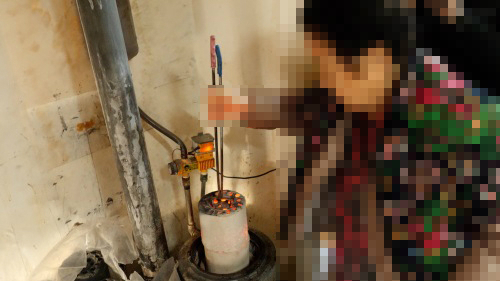 | 서울 노원구 백사마을에 사는 김점녀(83)씨가 사용하는 연탄보일러. |