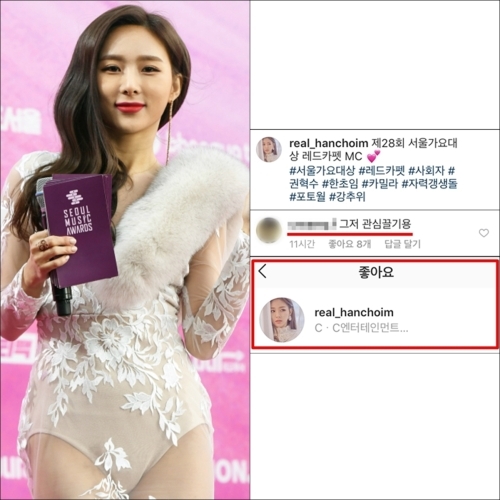 이러한 논란에 당사자인 한초임은 정작 의연한 반응을 보였다. '보기 좋았다'는 누리꾼의 댓글을 물론이고, "그저 관심끌기용"이라는 비판 댓글까지 하나하나에 '좋아요'를 누른 것이다.