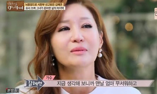 트로트 가수 김혜연(사진)이 과거 건강검진 결과 뇌종양이 발견돼 남편에게 유서를 썼다고 밝혔다.