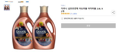 이에 쿠팡과 위메프에 특가로 나온 다우니 어도러블이 일시 품절됐지만 G마켓·옥션·11번가에서는 현재 해당 제품을 구매할 수 있다.
