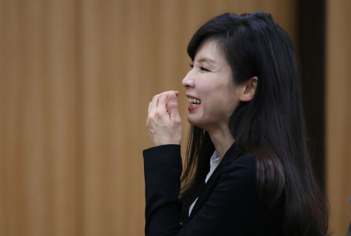 | 24일 서울 서초구 변호사회관에서 서지현(사진) 검사가 전날 안태근 전 검사장이 법정구속된 것과 관련한 기자회견을 마친 후 웃고 있다. 연합뉴스 |
