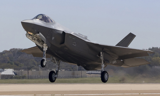 | 한국 공군 F-35A 전투기 1호기가 시험비행을 위해 이륙하고 있다. 방위사업청 제공 |