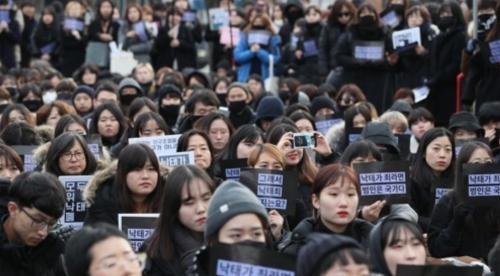 | 여성단체 ‘모두를 위한 낙태죄 폐지 공동행동’ 등 참가자들이 지난해 10월 서울 청계천 한빛 광장에서 ‘낙태금지형법 269조(낙태죄)’ 폐지를 촉구하는 집회를 하고 있는 모습. |