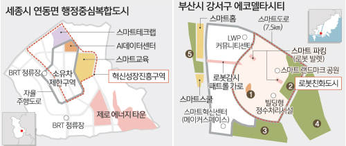 부산광역시 강서구에 조성 예정인 219만㎡ 규모의 에코델타시티에서는 급격한 고령화와 일자리 감소 등에 대응하기 위한 신산업 육성을 중점 추진하기로 했다. 주차 로봇이나 물류 이송 로봇, 의료로봇 등 생활 전반에 로봇을 적극적으로 활용한다. 이와 함께 도시 내 물순환 전 과정(강우-하천-정수-하수-재이용)에 첨단 스마트 물 관리 기술을 적용해 ‘한국형 물 특화 도시모델’을 구축하기로 했다. 60MW 규모의 수소연료전지 발전소와 하천수를 이용한 수열에너지 시스템도 도입한다.