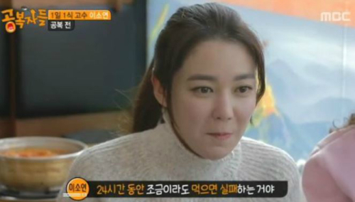 지난 22일 오후 방송된 MBC '공복자들'에서는 배우 이소연이 공복24시에 도전하는 모습으로 꾸며졌다.