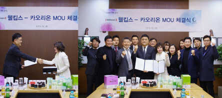 카오리온코스메틱스(대표이사 주은희 회장)는 국내 중견 업체인 웰킵스(대표이사 박종한)와 전략적 제휴를 통해 코스메틱을 접목한 피부보호 및 패션마스크 시장 공략을 위한 MOU를 8일 체결했다고 밝혔다.