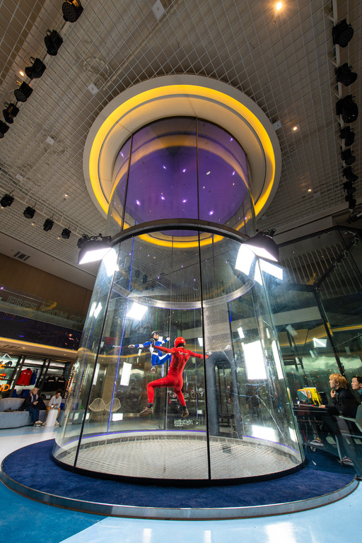 비결은 러시아 윈드터널 전문업체 기술과 설비로 만들어지는 바람이다. 비행 체험을 하는 윈드터널 좌우에 각 2개씩 총 4개의 모터로 최고 시속 360㎞에 달하는 바람이 만들어진다. 이 바람을 체험자 체격에 맞게 컴퓨터로 세밀하게 조정해 안전한 플라잉을 유도한다.