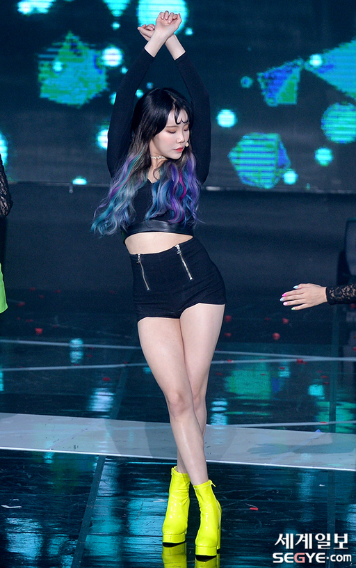 걸그룹 모모랜드 주이가 2일 오후 서울 마포구 상암동 SBS 프리즘타워 공개홀에서 열린 케이블 채널 SBS MTV '더쇼'의 현장공개에서 열띤 공연을 펼치고 있다.
