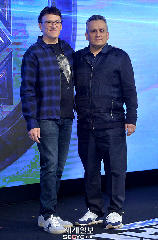 안소니 루소(사진 왼쪽)와 조 루소 감독이가 15일 오전 서울 광화문 포시즌스 호텔 서울에서 열린 영화 ‘어벤져스:앤드게임’의 내한 기자회견에 참석해 포즈를 취하고 있다.