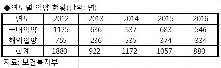 해외 입양수수료는 입양아동 규모와 비슷하다. 같은 기간 해외로 입양된 한국 아동은 △2012년 755명 △2013년 236명 △2014년 535명 △2015년 374명 △2016년 334명이었다.